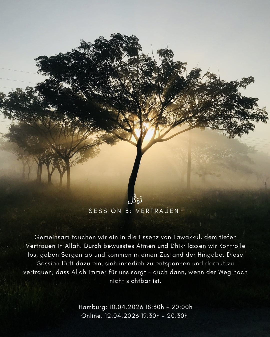 Gemeinsam widmen wir uns dem Thema Tawakkul - dem tiefen Vertrauen in Allah. Mit bewusstem Atem und Dhikr lassen wir Kontrolle los und kommen in den Zustand der kompletten Hingabe.